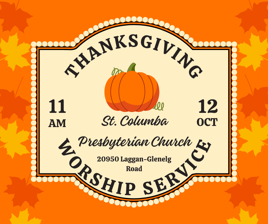 Thanksgiving Sunday | October 12, 2025 | St. Columba Presbyterian Church - Kirkhill | Thanksgiving Sunday at St. Columba | Worship service at 11:00 |